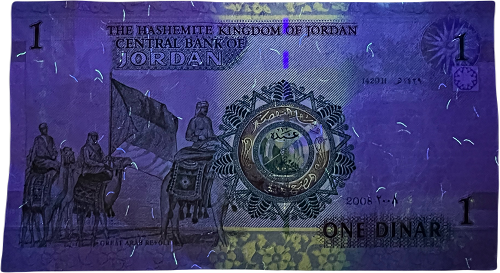 | Comments | Serial Number: Virtical in red at right , Horizontal in black at left. Watermark: Sherif Hussain ibn Ali Issuing Authority: CENTRAL BANK OF JORDAN , 2002-2021 Issue (2002) Banknote Size: 13.3 * 7.4 CM Banknote Printer: De La Rue (Thomas de la Rue; Thomas De La Rue & Co.; TDLR), London, United Kingdom Other Remark: Replacement Prefix: زز Signatures: Michael Marto & Umayya Salah Toukan |
