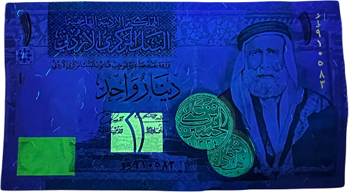 | Comments | Serial Number: Virtical in red at right , Horizontal in black at left. Watermark: Sherif Hussain ibn Ali Issuing Authority: CENTRAL BANK OF JORDAN , 2002-2021 Issue (2002) Banknote Size: 13.3 * 7.4 CM Banknote Printer: De La Rue (Thomas de la Rue; Thomas De La Rue & Co.; TDLR), London, United Kingdom Other Remark: Replacement Prefix: زز Signatures: Michael Marto & Umayya Salah Toukan |
