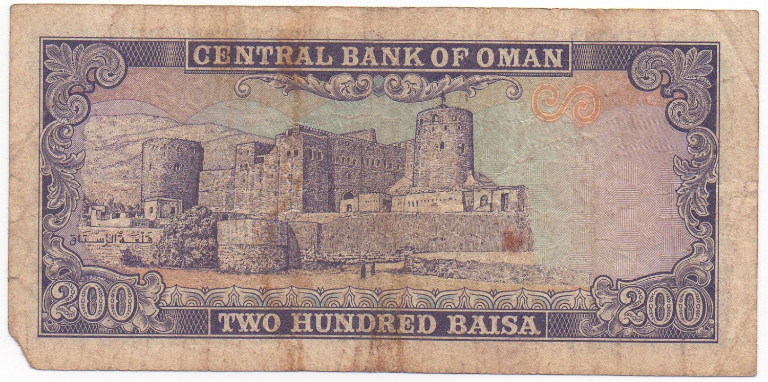 | Back Info | Color: Purple on multicolor underprint. Right: Middle: Rustaq Fort. Left: Rustaq Fort. |
