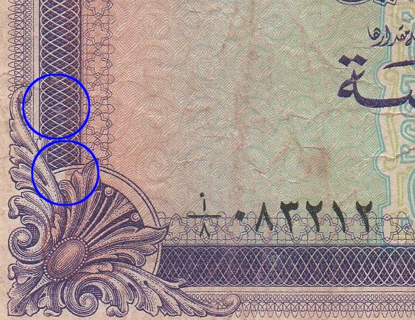 | Front Info | Color: Purple on multicolor underprint. Right: Arms Middle: Denomination & Unit in Arabic Language Left: |