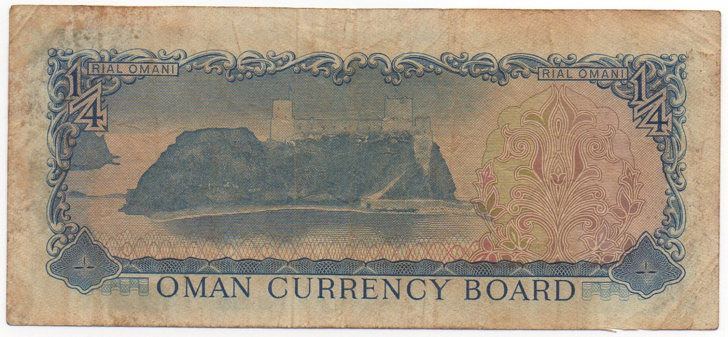 | Comments | Serial Number: Horizontal black color. Watermark: Arms Issuing Authority: OMAN CURRENCY BOARD , Issue 1973 ND Banknote Size: 12.8 * 5.8 CM Banknote Printer: Bradbury, Wilkinson & Co. (England) - BWC Other Remark: |