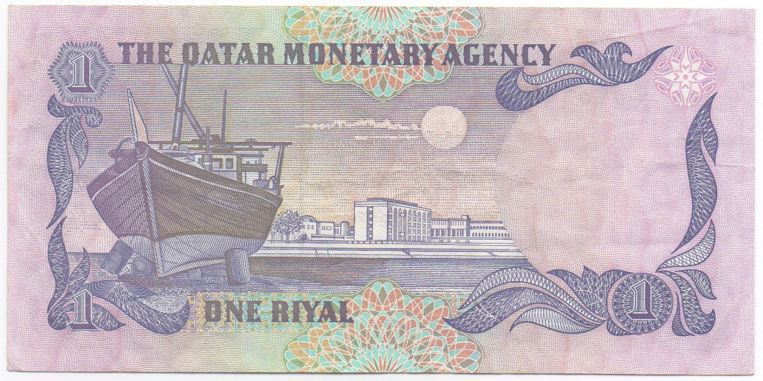 | Comments | Serial Number: Horizontal black serial number. Watermark: Falcon's head (without stripe on bill) Issuing Authority: Qatar Monetary Agency , ND (1985) "Arms" Issue Banknote Size: 13.4 * 6.6 CM Banknote Printer: De La Rue (Thomas de la Rue; Thomas De La Rue & Co.; TDLR), London, United Kingdom Other Remark: Replacement Prefix: رو/1 |