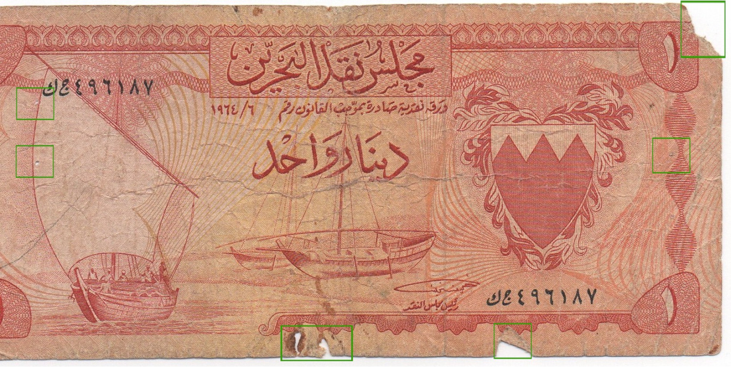 | Comments | Serial Number: Horizontal , Black color. Watermark: Falcon's head Issuing Authority: BAHRAIN CURRENCY BOARD , Issue 1964 ND Banknote Size: 14.8 * 6.8 CM Banknote Printer: Thomas De La Rue & Company, Limited (England) - TDLR Other Remark: Replacement Prefix: ز |