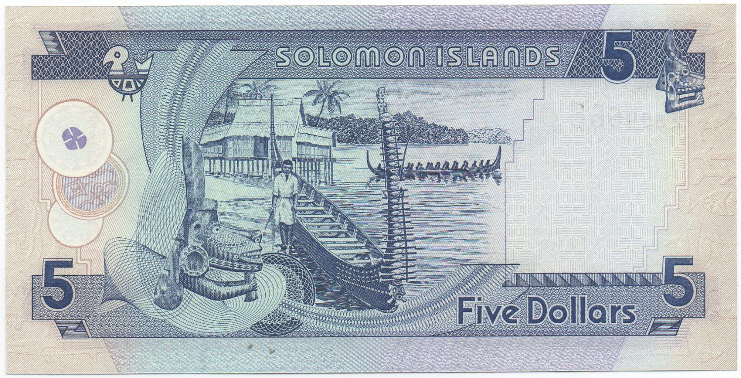 | Front Info | Color: Blue on light orange Right: Geometric forms , Arms Middle: Denomination & Unit in English Language , Solomon Islands flag Left: |