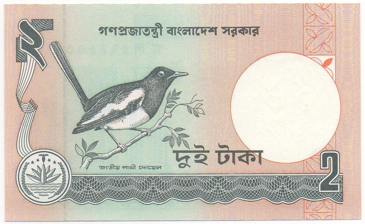 | Front Info | Color: Gray green on orange and green underprint. Right: Shaheed Minar, situated in Dhaka, (Martyr's Monument) Middle: Denomination & Unit Left: |