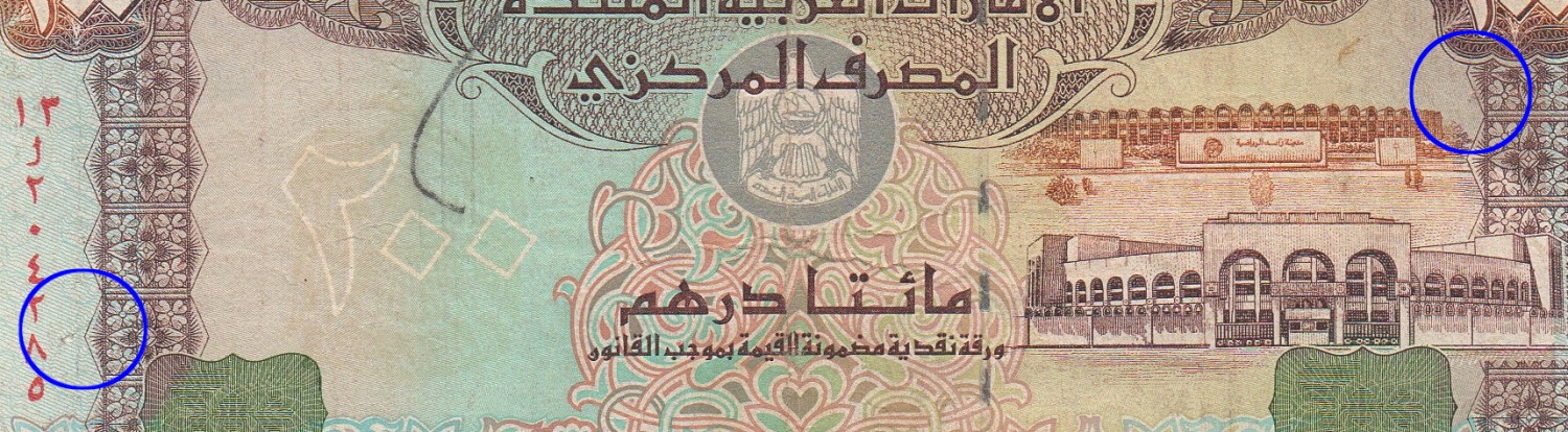 | Comments | Serial Number: Virtical in red at left , Horizontal in black at right. Watermark: Arabian Falcon's head, With segmented foil over security thread. Issuing Authority: United Arab Emirates Central Bank , 1989-1996 (1989) Issue Banknote Size: 15.7 * 6.7 CM Banknote Printer: Other Remark: Replacement Prefix: ل ر |